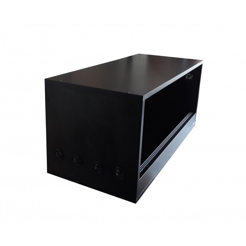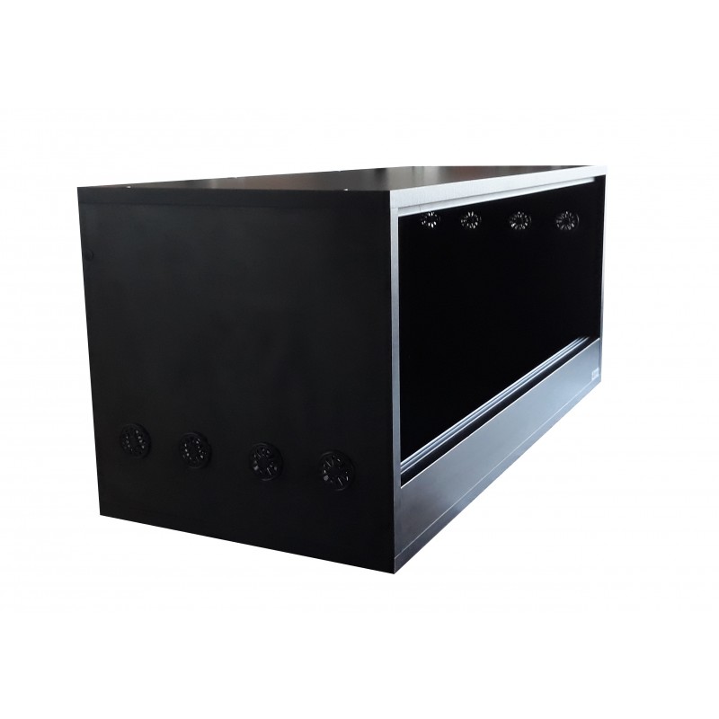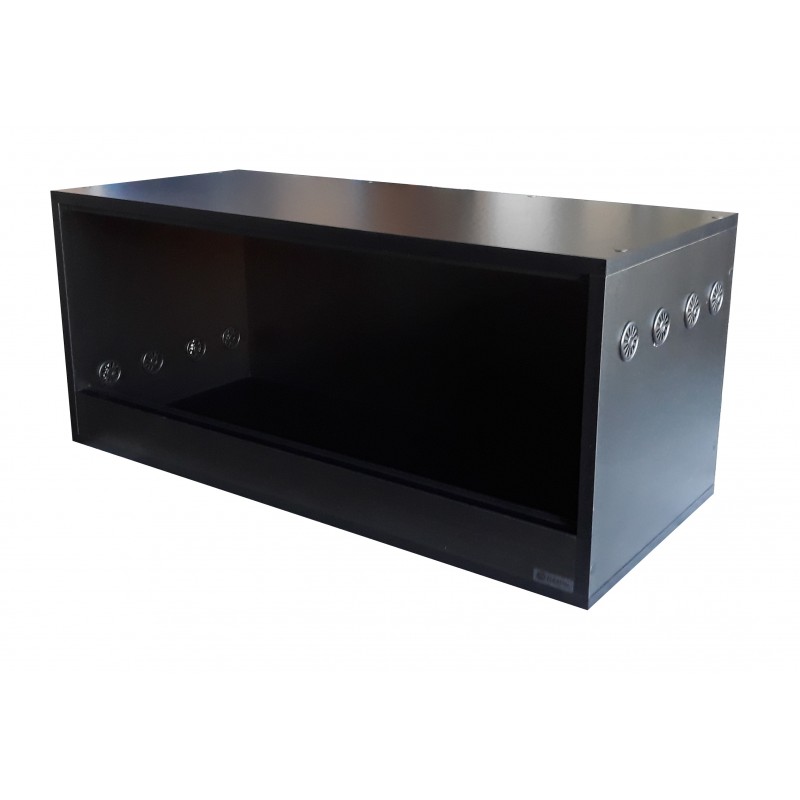 Wentylacja po bokach 10x40mm góra-dół (5 otworów).Otwierane poprzez rozsuwane drzwiczki szklane na prowadnicach.
